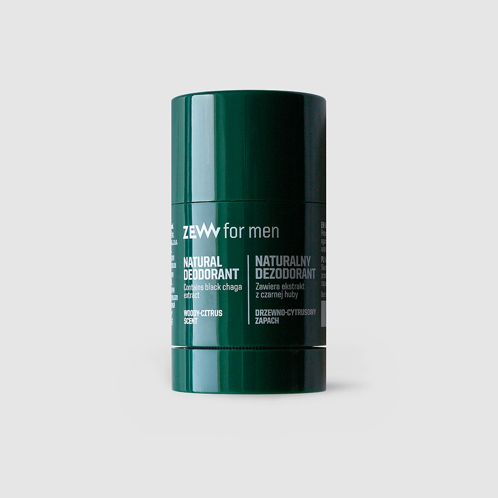 The natural twist-stick deodorant for men with a black chaga extract guarantees natural 24-hour protection against sweat and unpleasant odours. It soothes irritations of the delicate underarm skin and provides long-lasting comfort and relief. The ZEW for men twist-stick deodorant has a very pleasant, masculine woody-citrus scent, and its composition includes as much as 97% natural ingredients.